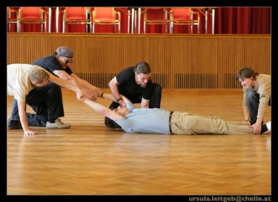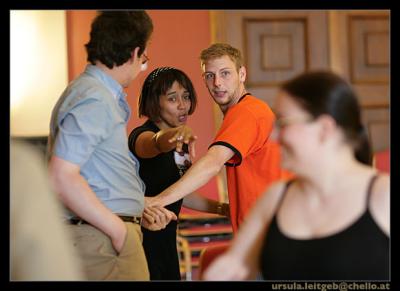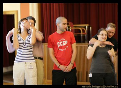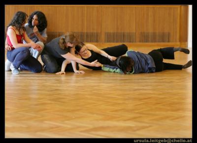 Das Bewegungsensemble der Opernaufführung "Il Corsaro" (eine Produktion der Opernwerkstatt Wien, Juli 2007) stellt sich vor und berichtet über die laufenden Probearbeiten; Premiere: Freitag, der 13.7.2007 in der Rossauerkaserne Wien