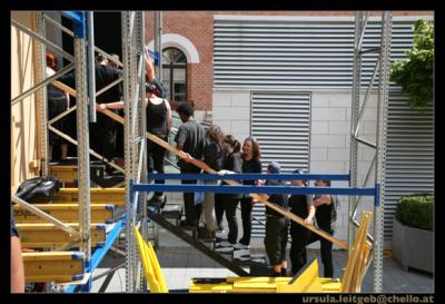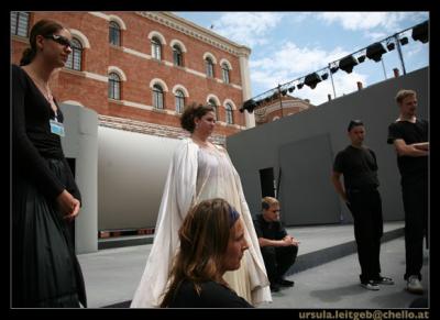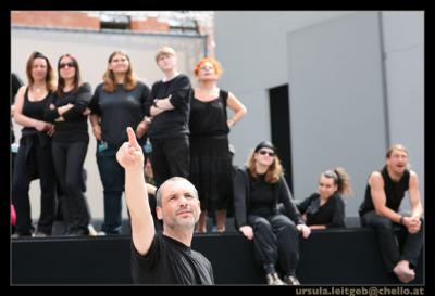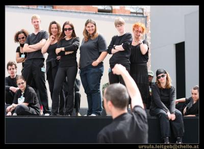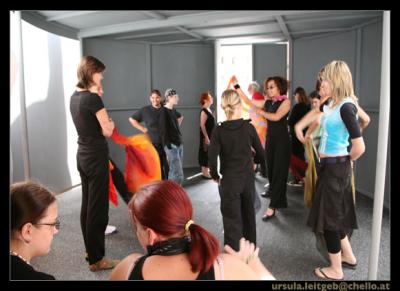 Das Bewegungsensemble der Opernaufführung "Il Corsaro" (eine Produktion der Opernwerkstatt Wien, Juli 2007) stellt sich vor und berichtet über die laufenden Probearbeiten; Premiere: Freitag, der 13.7.2007 in der Rossauerkaserne Wien